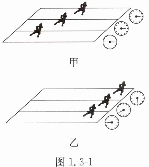 1. 田径运动会上运动员奋力奔跑的场景如图1.3 - 1所示,比赛开始后,观众通过比较