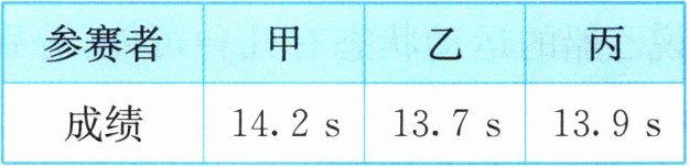 1. 体育课上,甲、乙、丙三名同学进行百米赛跑,若他们的成绩如表格所示,则获得第一名的是
