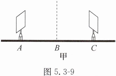 11. 某小组探究平面镜和凸透镜成像的特点,将光源和光屏分别竖直放置在水平光具座上的A、C位置,B是A、C连线的中点,如图5.3 - 9甲所示。在A、B之间朝向A观察,看到的光源形状如图5.3 - 9乙中的a所示。