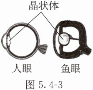 3. 童话世界里也有很多物理知识。鱼眼与人眼的结构示意图如图5.4-3所示,我们观察发现:鱼眼晶状体的形状比人眼更加凸一些。因此童话世界中生活在水里的美人鱼上岸后,若要看清远处的物体,应该戴