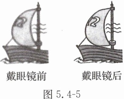5. 小明同学戴上眼镜前和戴上眼镜后观察远处帆船的情形如图5.4-5所示,由此可以判断出小明视力存在的问题及他所戴眼镜的镜片类型是(