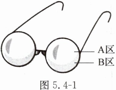 (选填“近视眼”或“远视眼”)。一种新型眼镜如图5.4-1所示,这种眼镜的镜片分上下两个区,A区厚薄均匀,B区可以矫正视力。老师戴上这种眼镜就可以通过A区