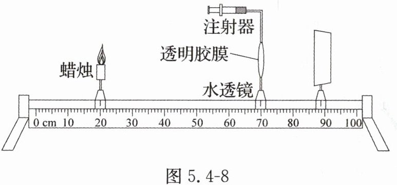8. 为探究人眼的成像原理,某同学制作了如图5.4-8所示的实验装置,用水透镜模拟眼睛的晶状体,通过注水或抽水改变水透镜的凸度。