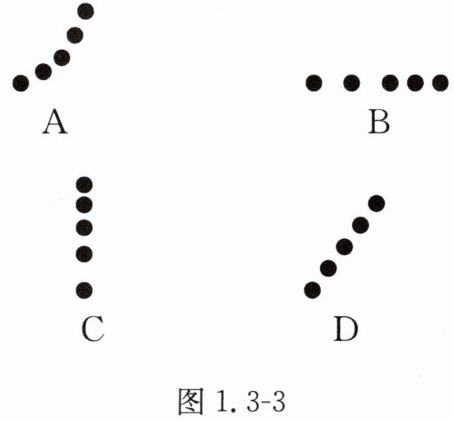 11. 利用每秒闪光10次的照相装置拍摄到的四个物体运动的频闪照片(黑点表示物体)如图1.3 - 3所示,其中做匀速直线运动的物体是(