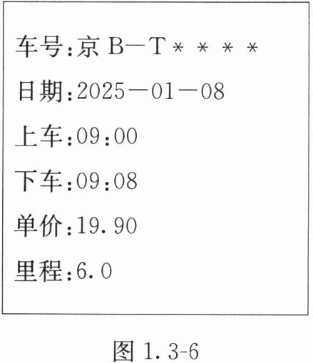 15. 小红同学乘出租车到达目的地时的车费收据如图1.3 - 6所示。