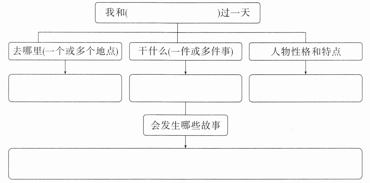 4. 你想和谁过一天呢?请补全下列思维导图,理清本次习作思路。