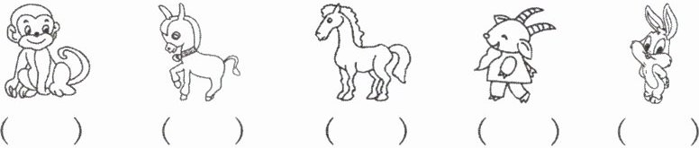 前面的第一个动物下面对应的( )里画“√”,后面的第一个动物画“○”。