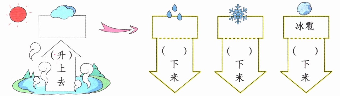 三 新题型 在方框中填写水的不同形态的名称,在括号中填入“飘、打、落”。