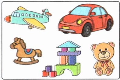 6. 右图的玩具中,你最喜欢哪个?它是什么样子的?它是怎么玩的?再写一写你喜欢它的原因。