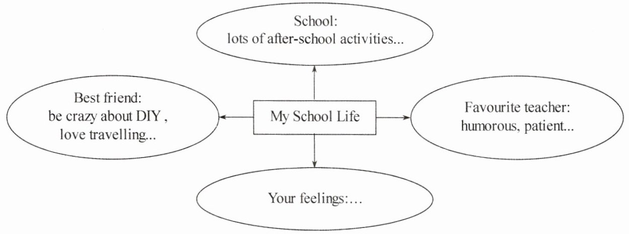 There are lots of after-school activities. I can play basketball with my classmates. We have lots of fun. My favourite teacher is Miss Wang. She is humorous and often tells jokes. She is patient enough to help us with problems. Tom is my best friend. He is crazy about DIY and likes making model planes. Travelling is one of his hobbies. He often shows his photos on the internet. We all enjoy them very much. I feel very happy to study in a school like this. I love my colourful school life.