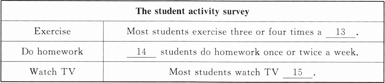 听第一篇短文,回答第 13~15 小题。请根据短文内容,选择正确答案,完成信息记录表。答题完毕,请等待"嘀"的信号,进入下一篇短文。