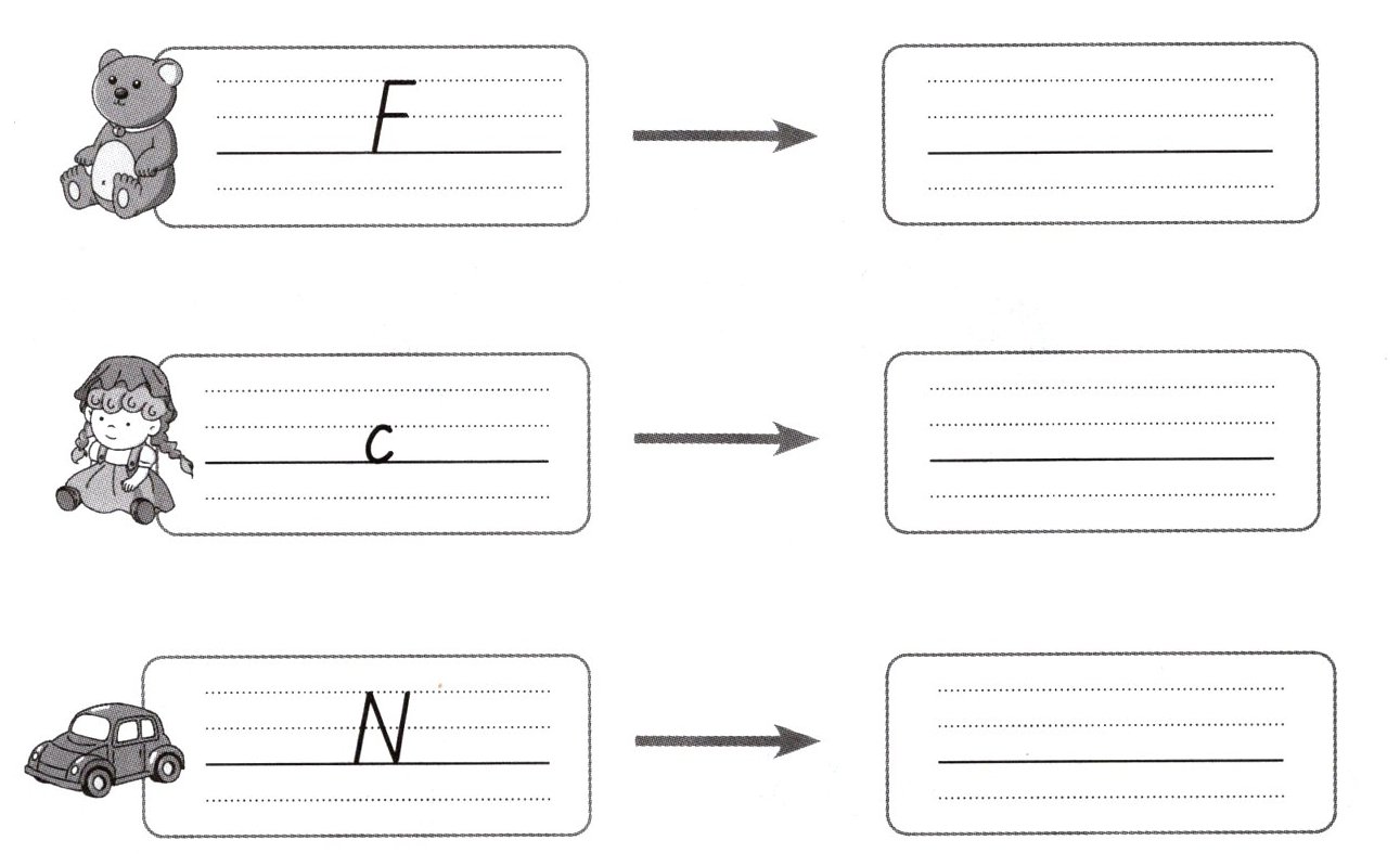 Ⅲ. Think and write. 想一想,给下列字母加一笔,变成新的字母,并写出新字母的大小写形式。