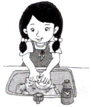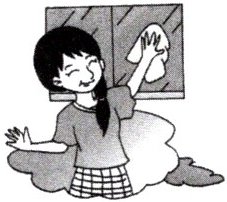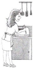 1. cooks the meal 2. water the flowers 3. help him clean the windows 4. do the dishes 5. wash the clothes 6. sweep the floor