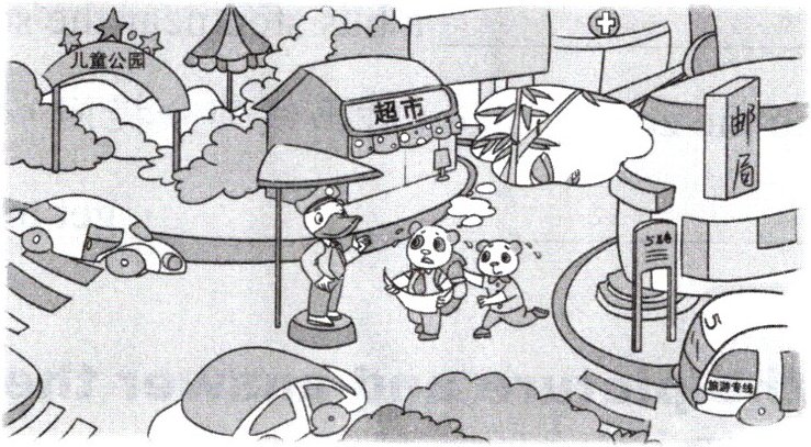 ( ) 4. The pandas can take the No. 10 bus and get off at Fujing Road, then they can find the supermarket.