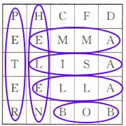 三、请找出下列表格中的人名。(注意人名横、纵向相连,首字母要大写)