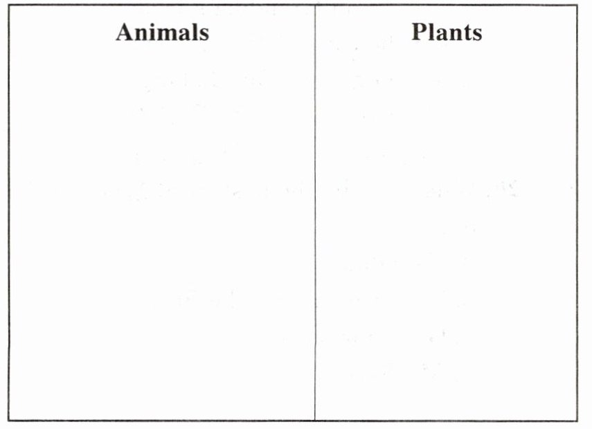 活动1 Write down the things (animals and plants) you see on the farm.、