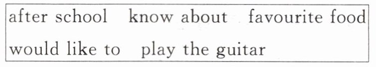 16. would like to 17. after school 18. plays the guitar 19. favourite food 20. know about