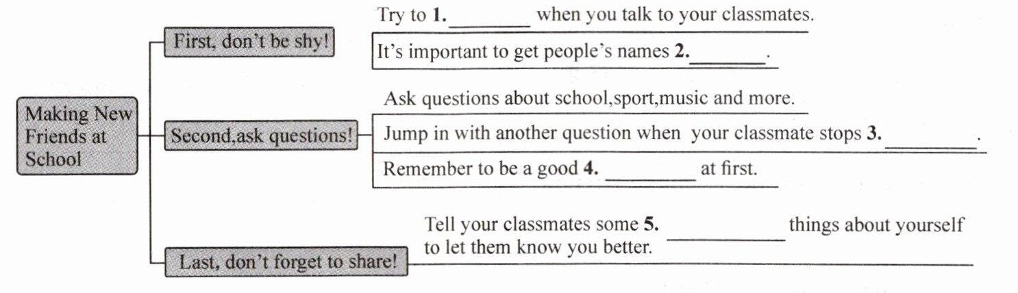 1.smile 2.right 3.talking 4.listener 5.interesting
