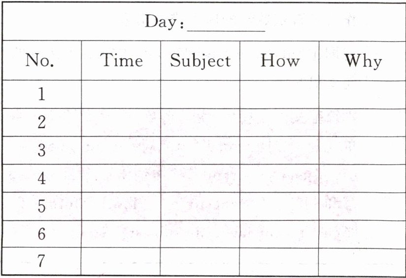 Work in groups. Talk about your class timetable for a certain day(某天). How do you like the subjects? And why? Please fill in the form.