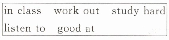 16.In class 17.listen to 18.good at 19.work out 20.study hard