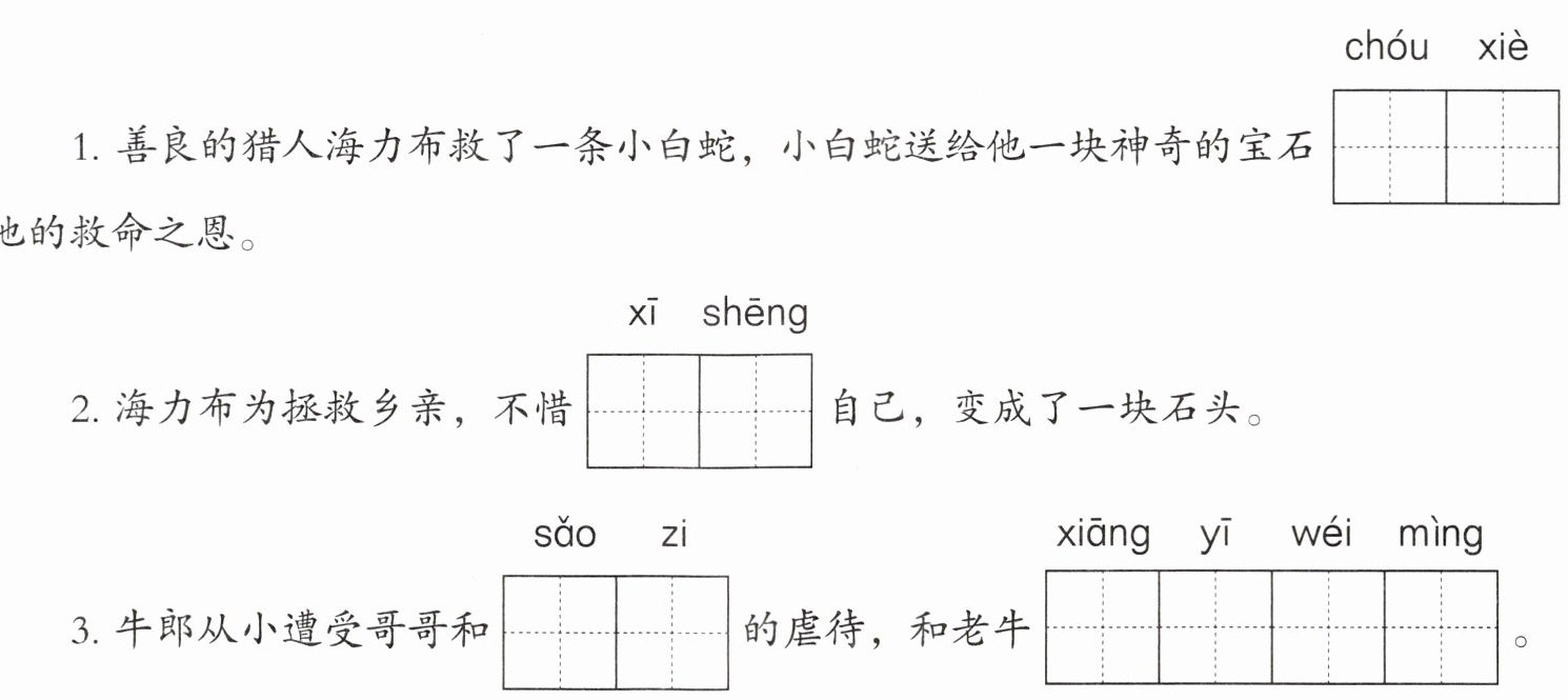 1.酬谢 2.牺牲 3.嫂子 相依为命
