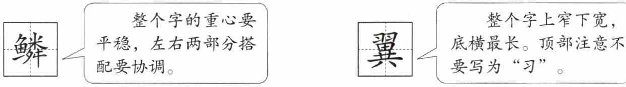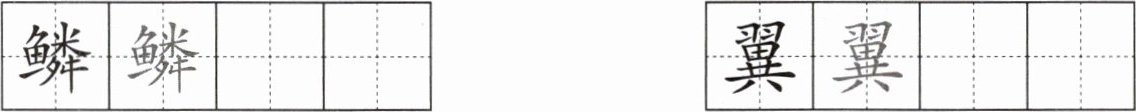 鳞鳞 翼翼 履履 疆疆(注:此处为按要求书写的汉字,实际作答需在田字格中规范书写“鳞、鳞、翼、翼、履、履、疆、疆”)