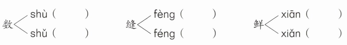 故答案依次为:数学;数数;缝隙;缝补;新鲜;鲜为人知。