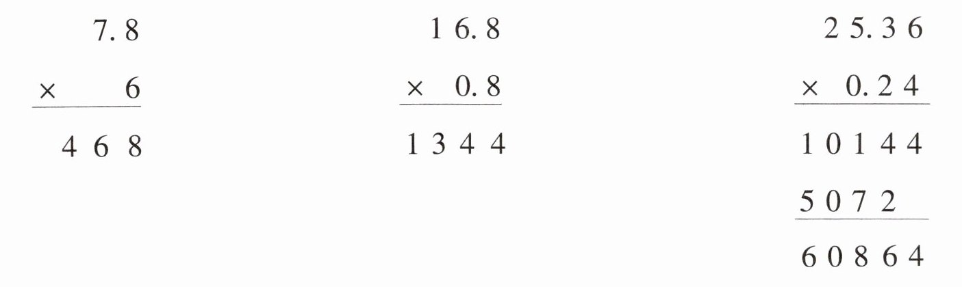 两个因数中一共有四位小数,所以从积的右边起数出四位点上小数点,即$6.0864$。