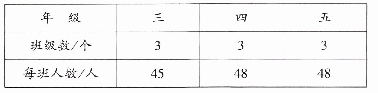 三年级有 3 个班,每班 45 人,则三年级总人数为: