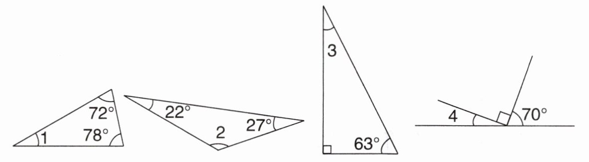 因为三角形内角和$S = 180^{\circ}$,对于第三个直角三角形(有一个角是$90^{\circ}$),已知一个锐角是$63^{\circ}$。