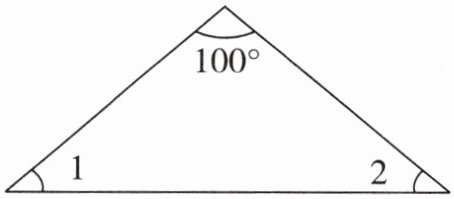 2. 解析:本题考查三角形内角和的知识点。三角形的内角和是$180°$。已知其中一个角是$100°$,且$\angle 1 = \angle 2$,那么可以用三角形内角和减去已知角,再除以2来求得$\angle 1$的度数。