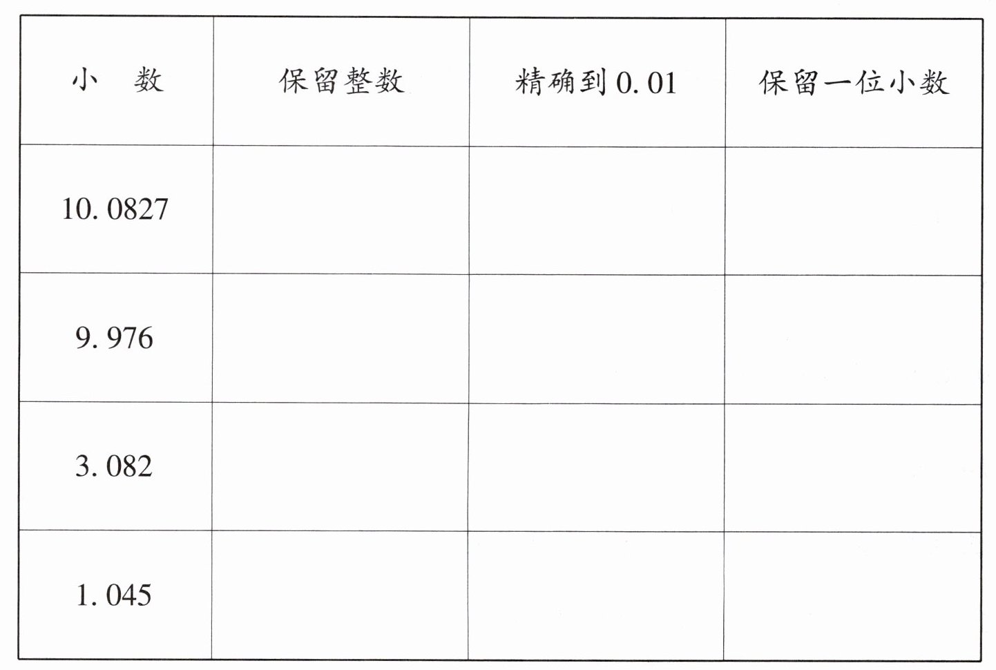 | 小 数 | 保留整数 | 精确到0.01 | 保留一位小数 |