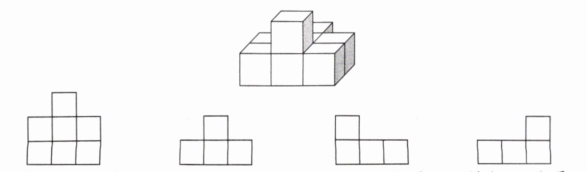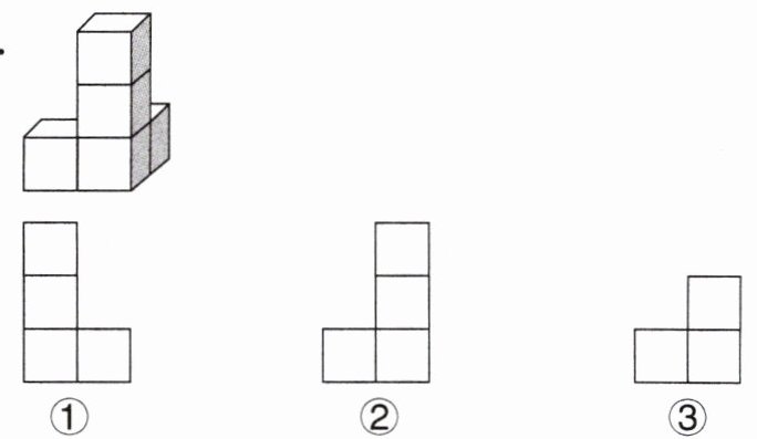 1. 填一填,找出从前面、上面、左面、右面看到的形状。