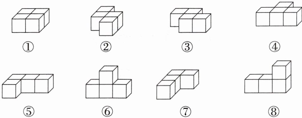 3. 用同样大小的正方体搭出下列各立体图形并填空。