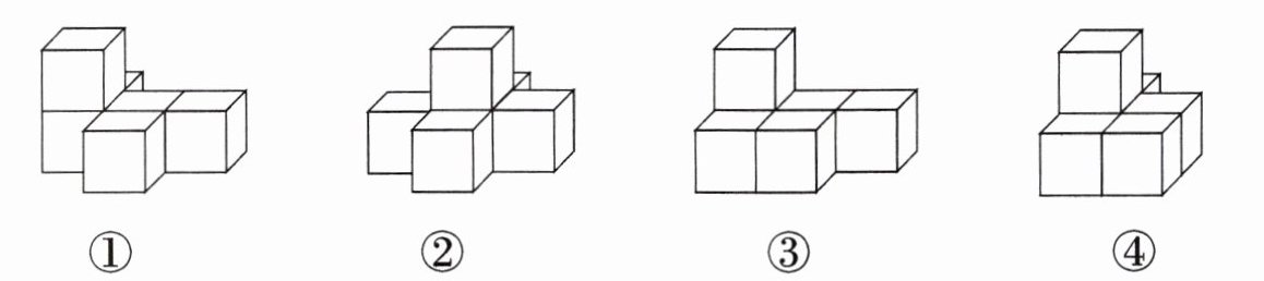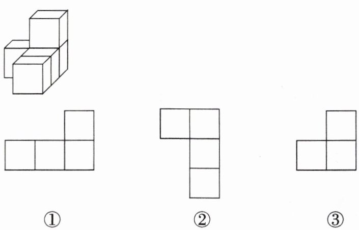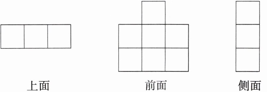 3. 根据下面从不同方向看到的由正方体组成的物体的形状图回答问题。