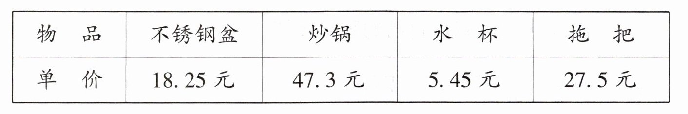 (2)买 1 个不锈钢盆和 1 个炒锅一共需要多少钱?
