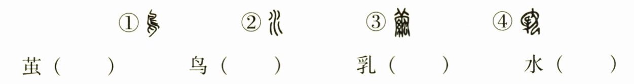 一、古人造字,源起象形,依样画瓢,栩栩如生。请将下列古体字的序号填写在简体字后面的括号中。(4 分)