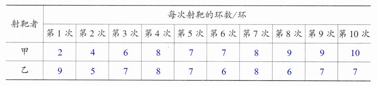 乙:(9+5+7+8+7+6+8+6+7+7)÷10=7(环)