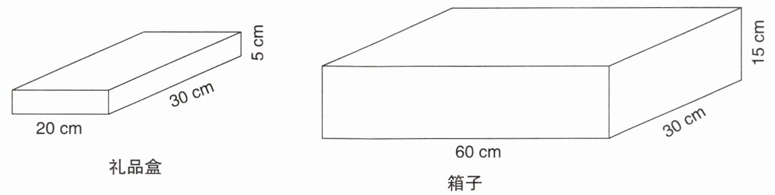 4. 把礼品盒装到箱子里,1箱最多能装多少盒?(材料厚度忽略不计。)