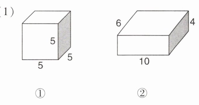 图①是( )体,它的棱长之和是( ),表面积是( ),体积是( )。图②是( )体,它的棱长之和是( ),表面积是( ),体积是( )。
