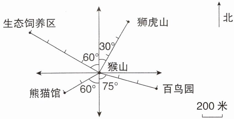 )米。 (2)百鸟园在猴山(