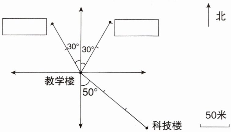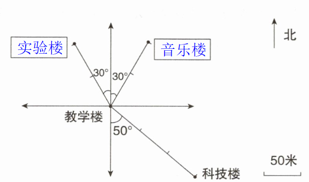(2)音乐楼在教学楼北偏东$30^{\circ}$方向100米处。