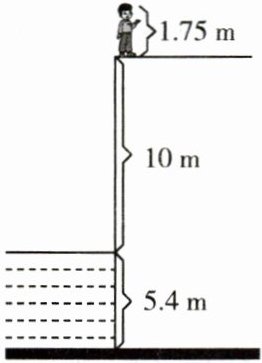 14. (14 分)如图,一名跳水运动员参加 10 m 跳台的跳水比赛(10 m 跳台是指跳台离水面的高度为 10 m),这名运动员的身高为 1.75 m,跳水池水深为 5.4 m(规定向上为正).