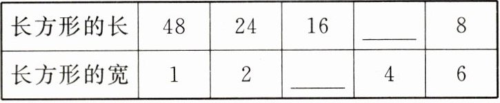 设长方形的长为x,宽为y,根据表格中的数据可知,无论长和宽如何变化,都有xy=48,即这组长方形的长与宽的乘积一定,