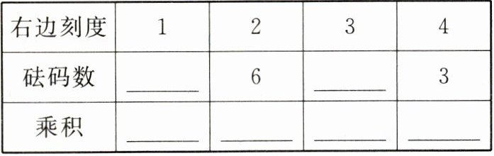 (2)反比例关系.因为刻度数和砝码数的乘积为定值,所以刻度数和砝码数成反比例关系.