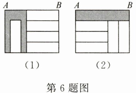 6. (3 分)如图, 在两个完全相同的大长方形中各放入五个完全一样的白色小长方形, 得到图(1)与图(2).若 $AB = m$, 则图(1)与图(2)阴影部分周长的差是 (
