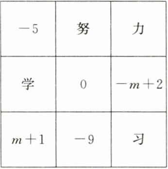 2. (3 分)如图, 在一个三阶幻方中, 填写了一些数、式子和汉字(其中每个式子或汉字都表示一个数), 若处于每一横行, 每一竖列, 以及两条斜对角线上的 3 个数之和都相等, 则这个幻方中 $m$ 的值为 (