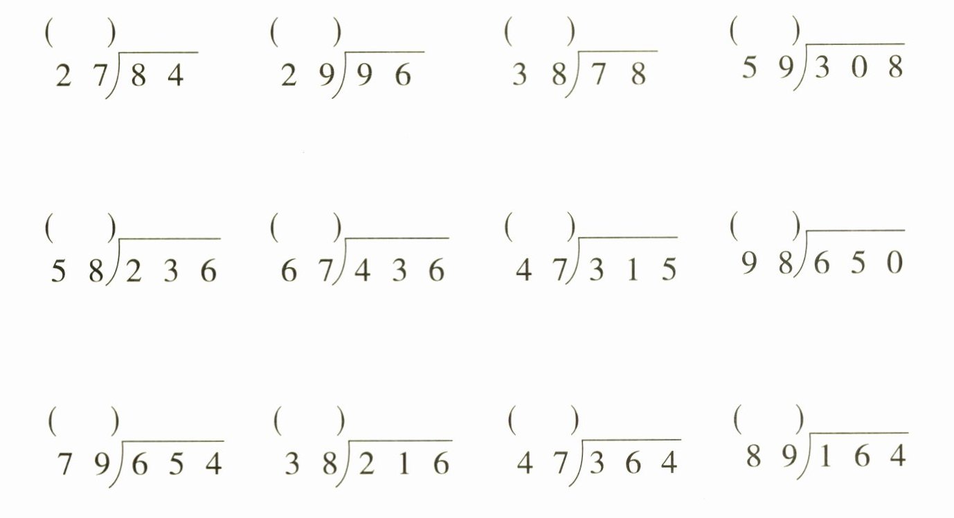 五、先想想把除数看作几来试商,再算出来。(12分)
