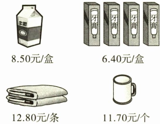 4. 张奶奶用 80 元去超市购买以下物品,钱够吗?(4 分)