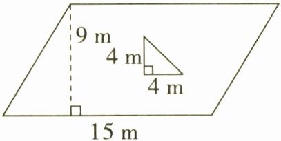 1. 如图,一个平行四边形的鱼塘,在鱼塘中建了一个等腰直角三角形的休息区后,鱼塘的面积还有多少?(6 分)